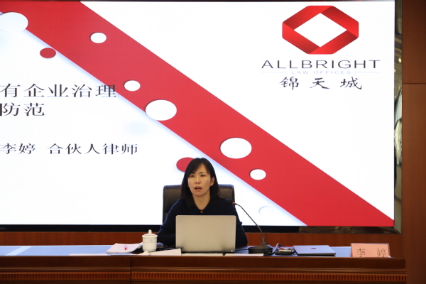 本次培训由上海市锦天城律师事务所合伙人李婷律师进行授课,重点围绕新《公司法》下国有企业治理及董监高法律风险防范两个方面内容展开专题培训,李律师通过列举具有代表性的案例,详细解读了企业管理中常见问题及合规管理审查要点,并提出了切实有效的防范措施。