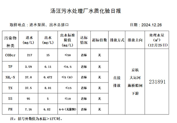 汤汪污水处理厂水质化验日报(2024.12.26)