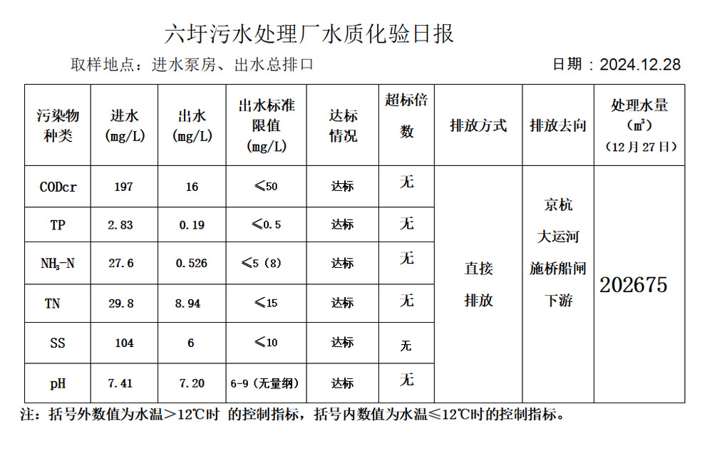 六圩污水处理厂水质化验日报(2024.12.28)