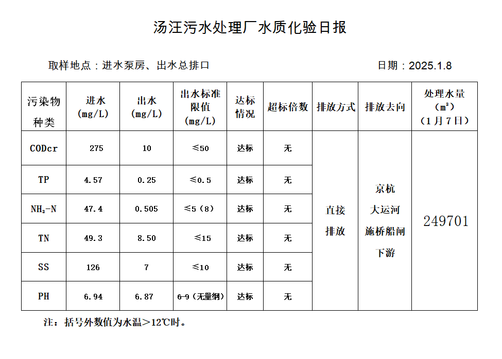汤汪污水处理厂水质化验日报(2025.1.8)
