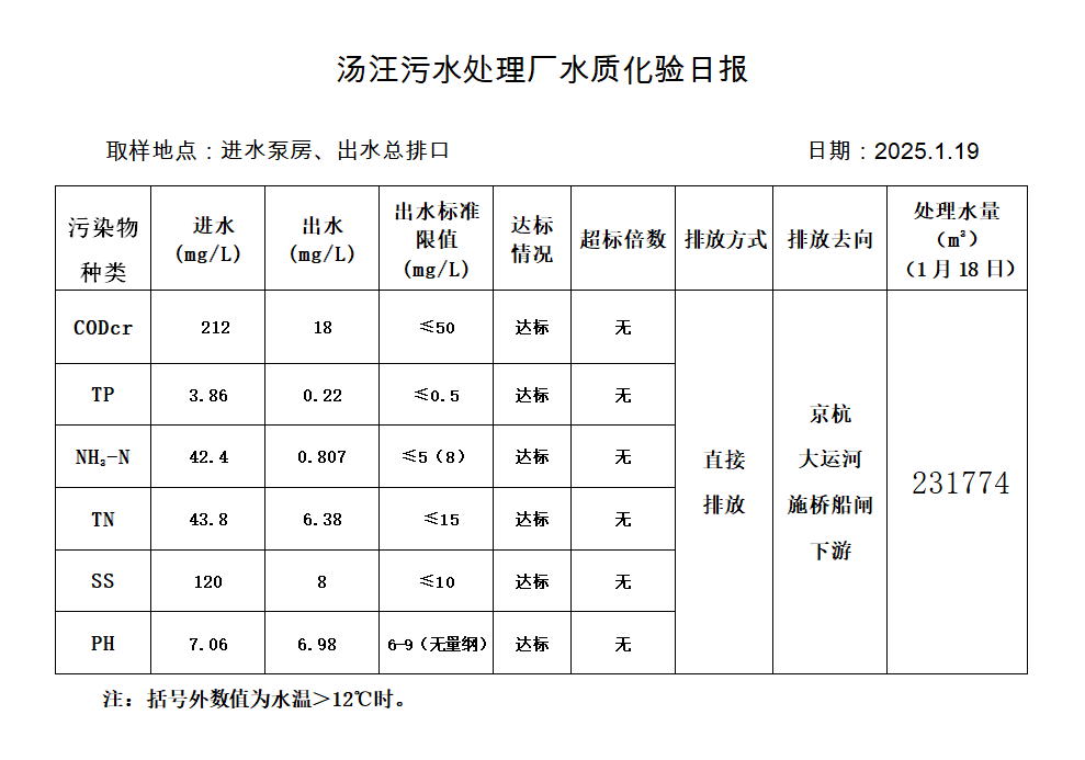汤汪污水处理厂水质化验日报(2025.1.19)