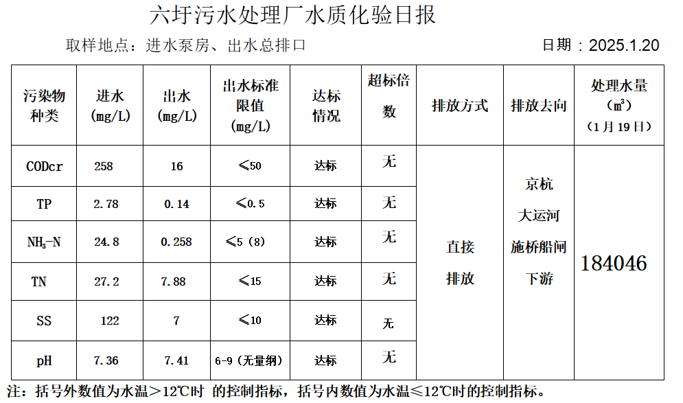 六圩污水处理厂水质化验日报(2025.1.20)