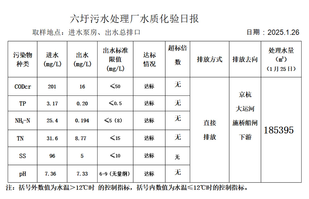 六圩污水处理厂水质化验日报(2025.1.26)