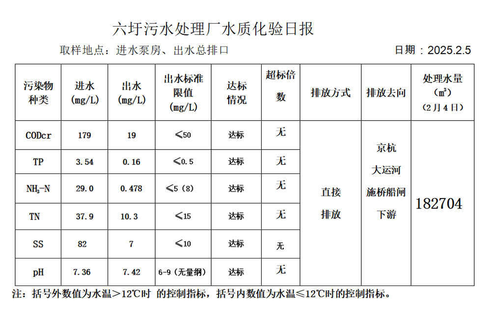 六圩污水处理厂水质化验日报(2025.2.5)