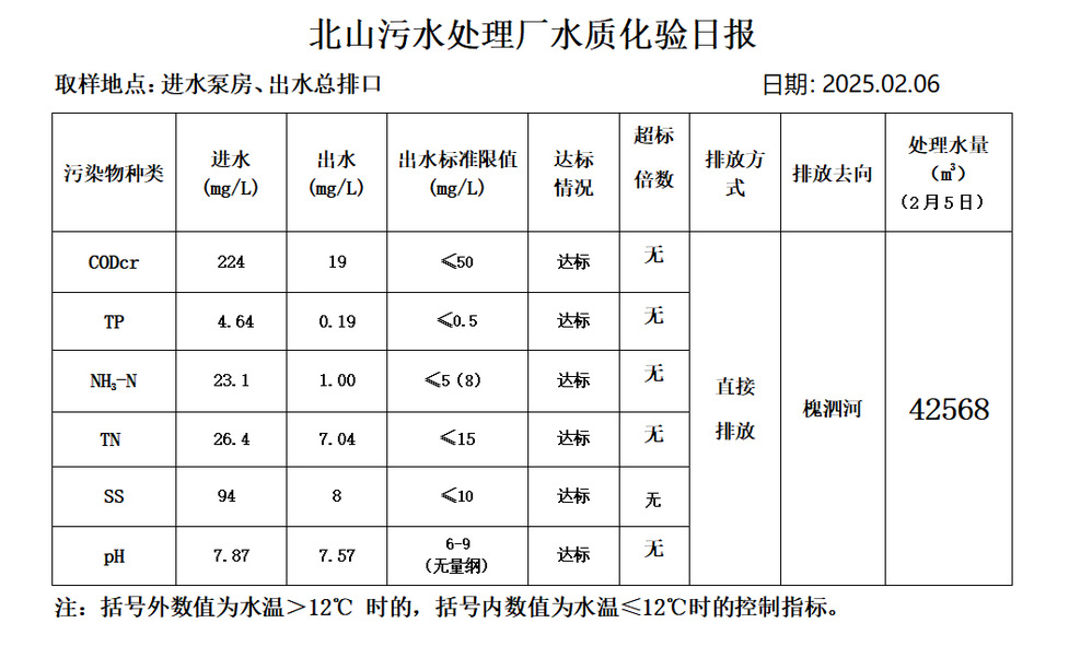 北山污水处理厂水质化验日报(2025.2.6)