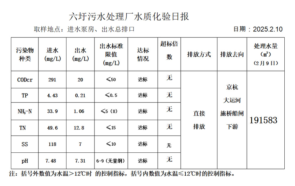 六圩污水处理厂水质化验日报(2025.2.10)