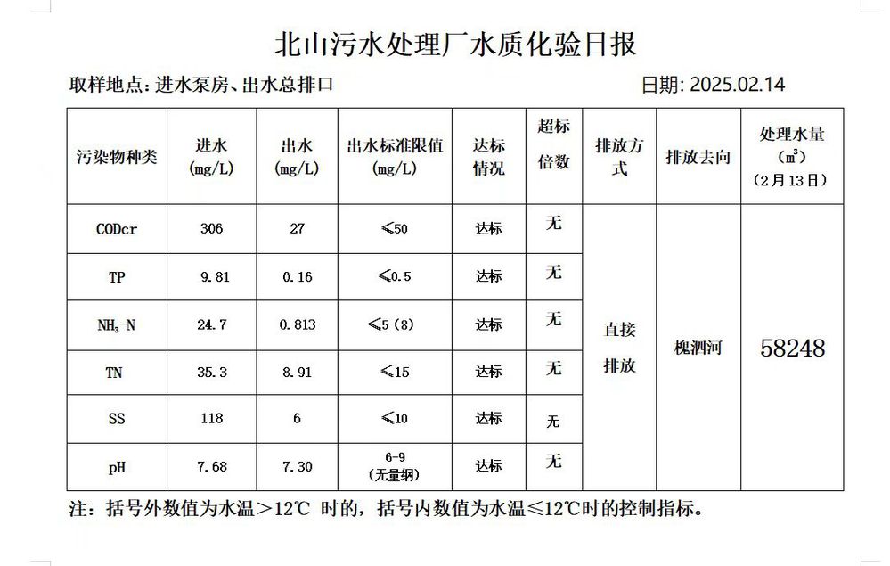 北山污水处理厂水质化验日报(2025.2.14)