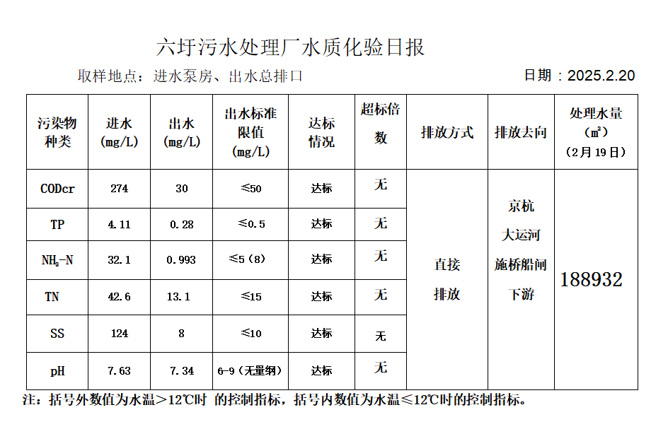 六圩污水处理厂水质化验日报(2025.2.20)