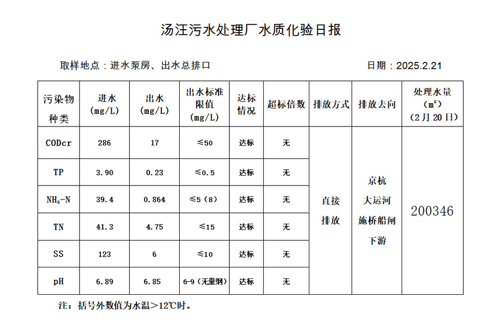 汤汪污水处理厂水质化验日报(2025.2.21)