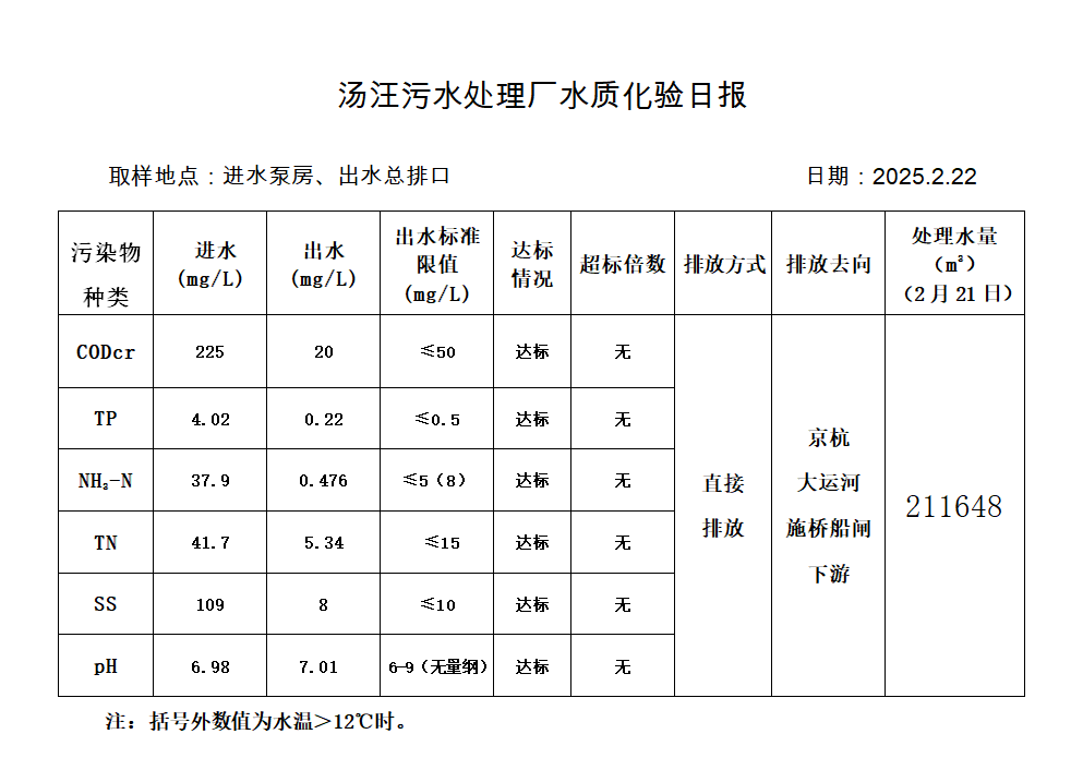 汤汪污水处理厂水质化验日报(2025.2.22)
