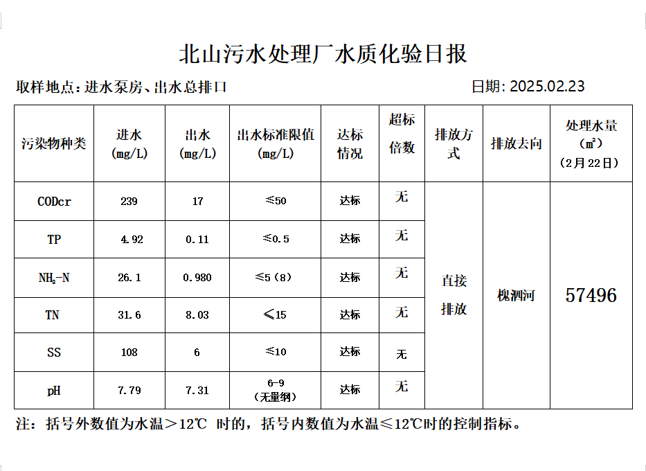 北山污水处理厂水质化验日报(2025.2.23)