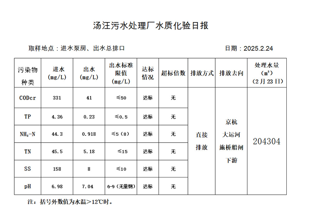 汤汪污水处理厂水质化验日报(2025.2.24)