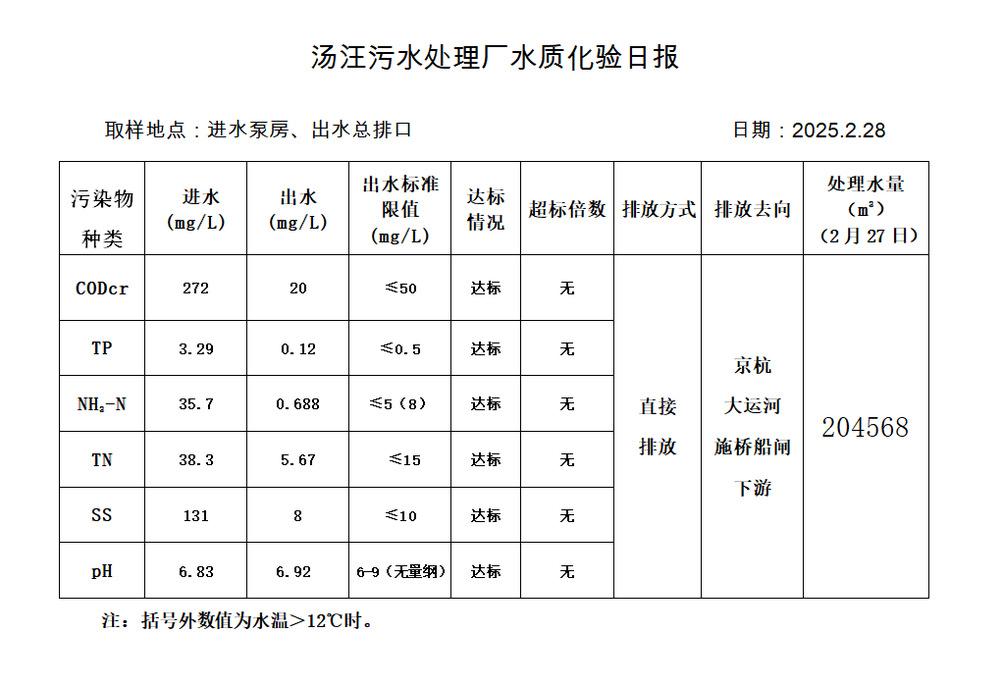 汤汪污水处理厂水质化验日报(2025.2.28)