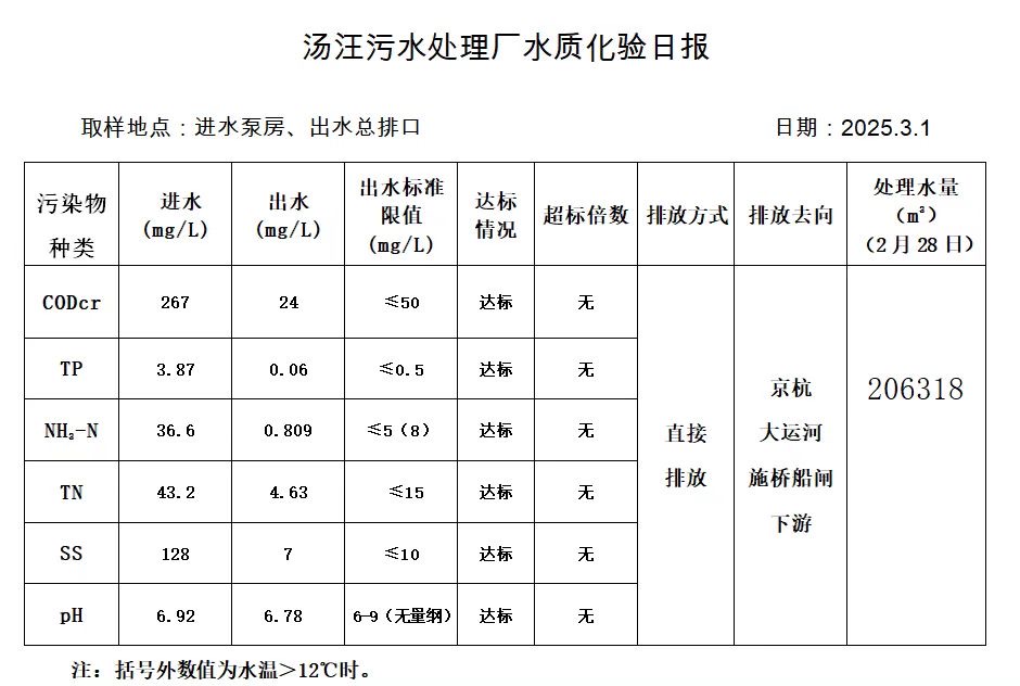 汤汪污水处理厂水质化验日报(2025.3.1)