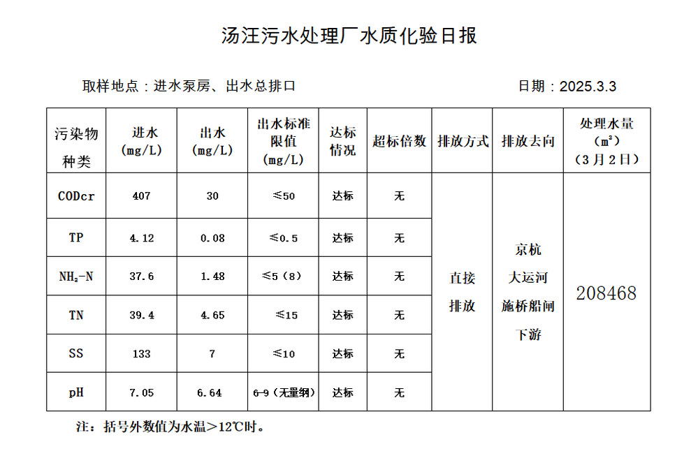 汤汪污水处理厂水质化验日报(2025.3.3)