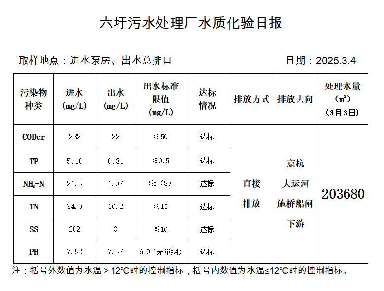 六圩污水处理厂水质化验日报(2025.3.4)