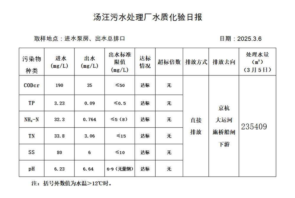 汤汪污水处理厂水质化验日报(2025.3.6)