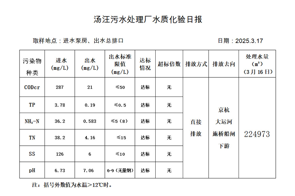 汤汪污水处理厂水质化验日报(2025.3.17)