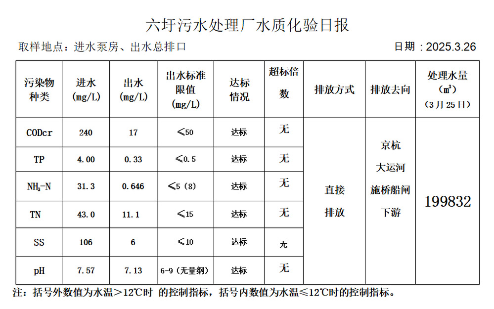 六圩污水处理厂水质化验日报(2025.3.26)