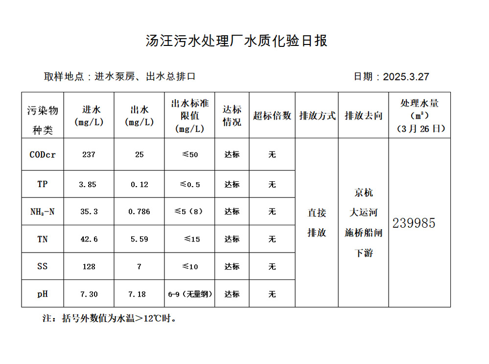 汤汪污水处理厂水质化验日报(2025.3.27)