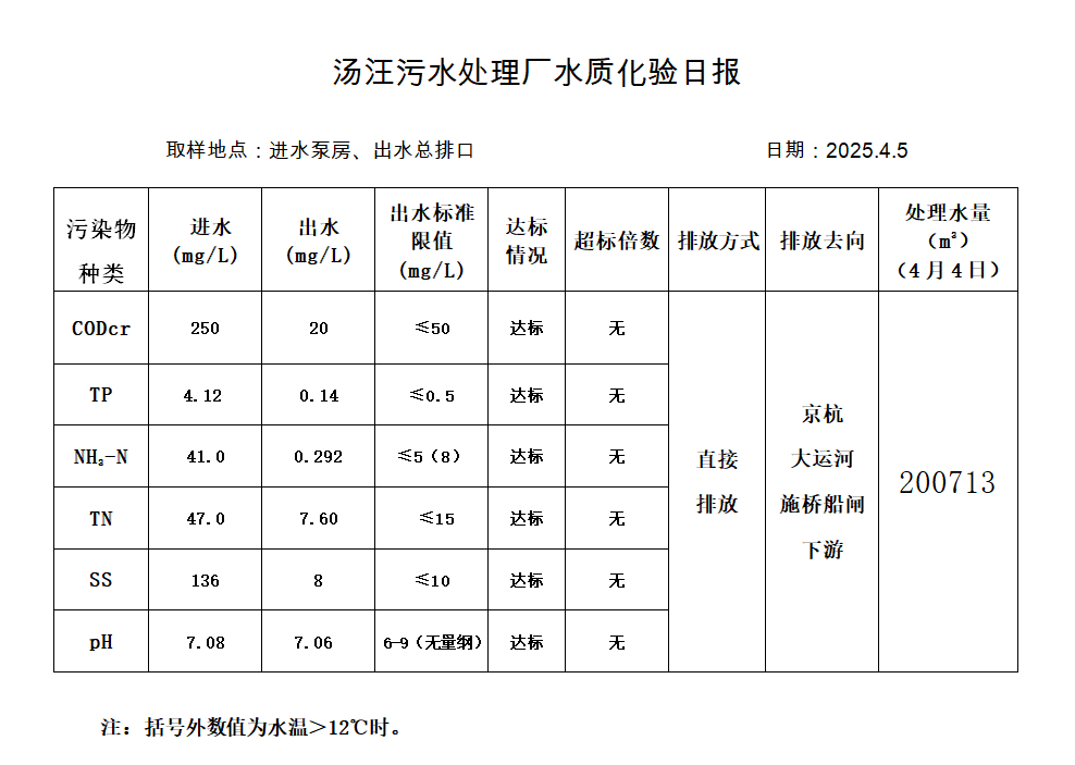 汤汪污水处理厂水质化验日报(2025.4.5)