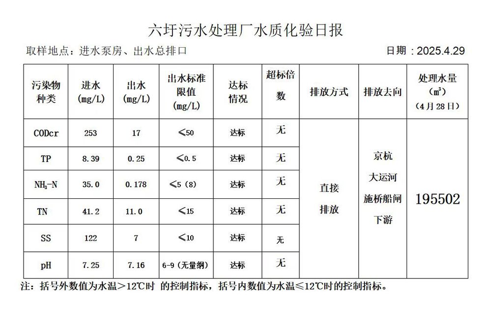 六圩污水处理厂水质化验日报(2025.4.29)