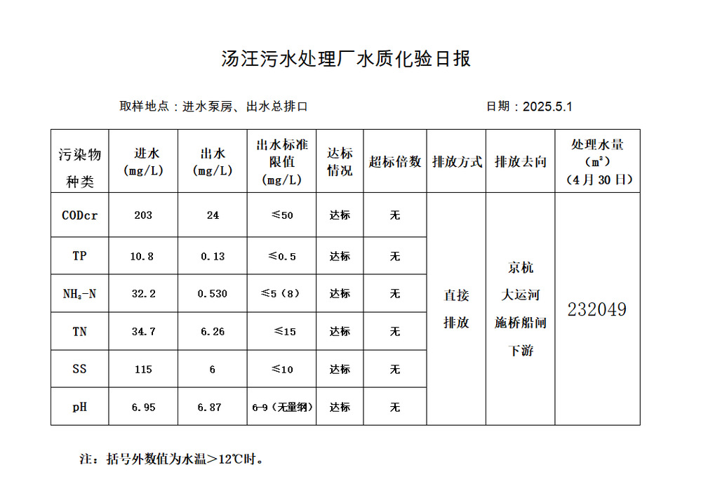 汤汪污水处理厂水质化验日报(2025.5.1)