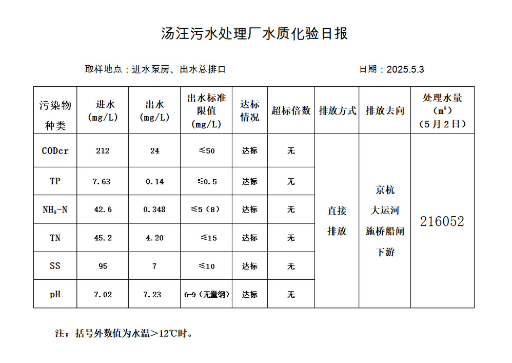 汤汪污水处理厂水质化验日报(2025.5.3)