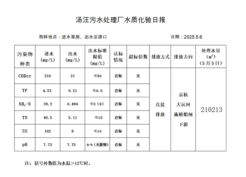 汤汪污水处理厂水质化验日报(2025.5.6)
