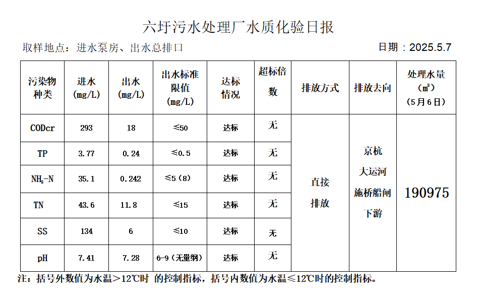 六圩污水处理厂水质化验日报(2025.5.7)