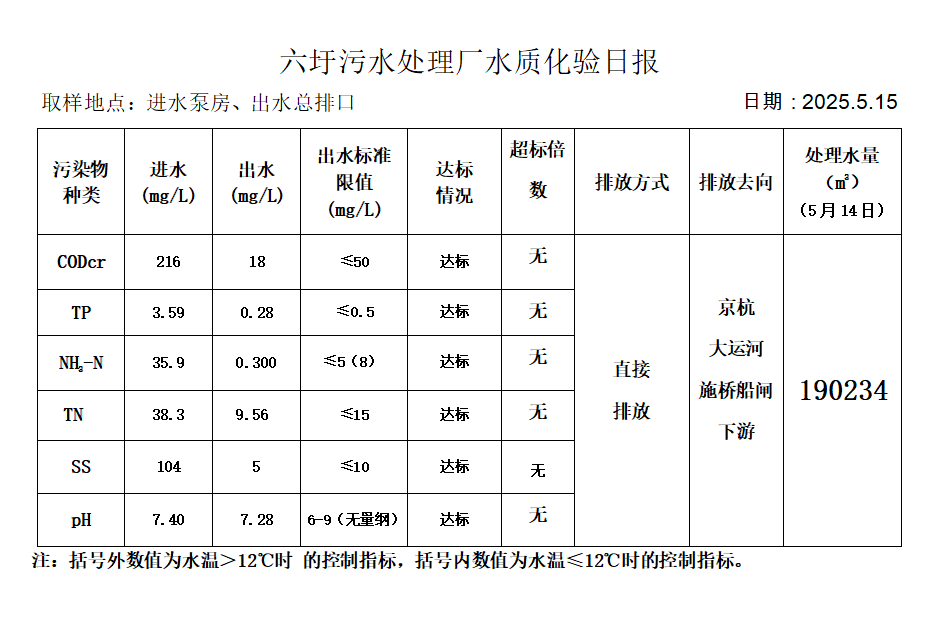 六圩污水处理厂水质化验日报(25.5.15)