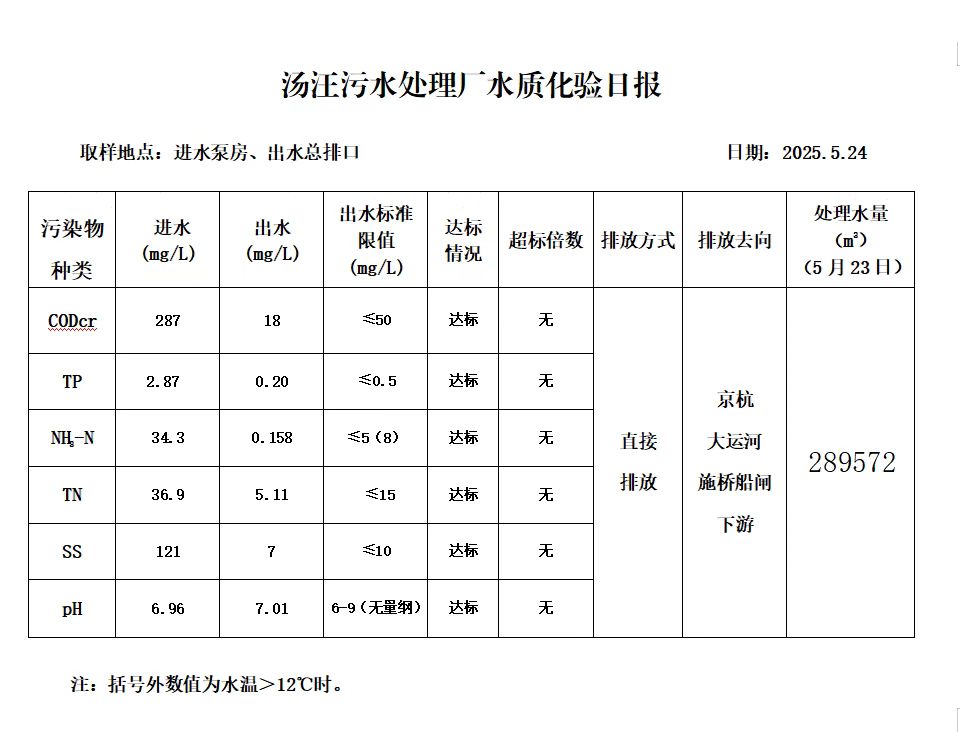 汤汪污水处理厂水质化验日报(25.5.24)