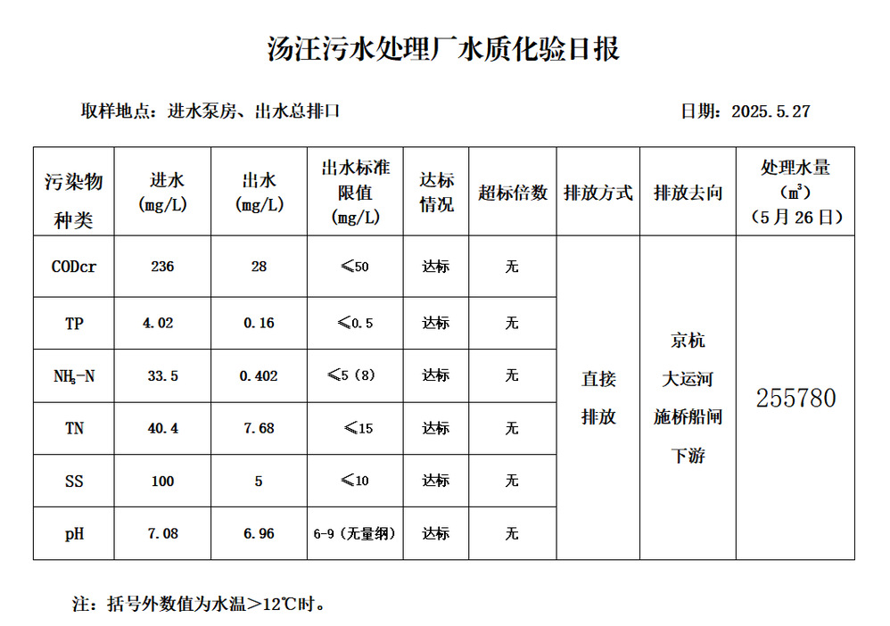 汤汪污水处理厂水质化验日报(25.5.27)
