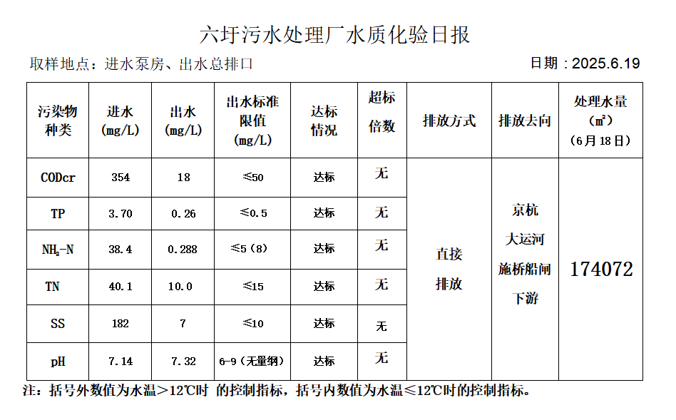 六圩污水处理厂水质化验日报(25.6.19)