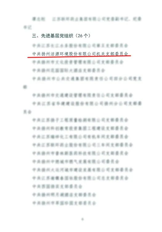 在2025年度扬州市国资系统“两优一先”评选中,中共扬州洁源环境股份有限公司机关支部委员会荣获市国资系统“先进基层党组织”称号。这不仅是对洁源环境公司党建工作的高度认可,更是基层党支部在环保领域坚持党建引领,推动公司高质量发展的生动诠释。