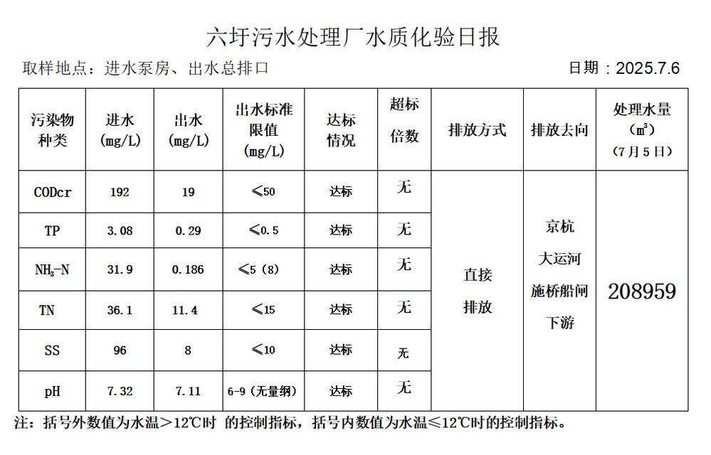 六圩污水处理厂水质化验日报(25.7.6)