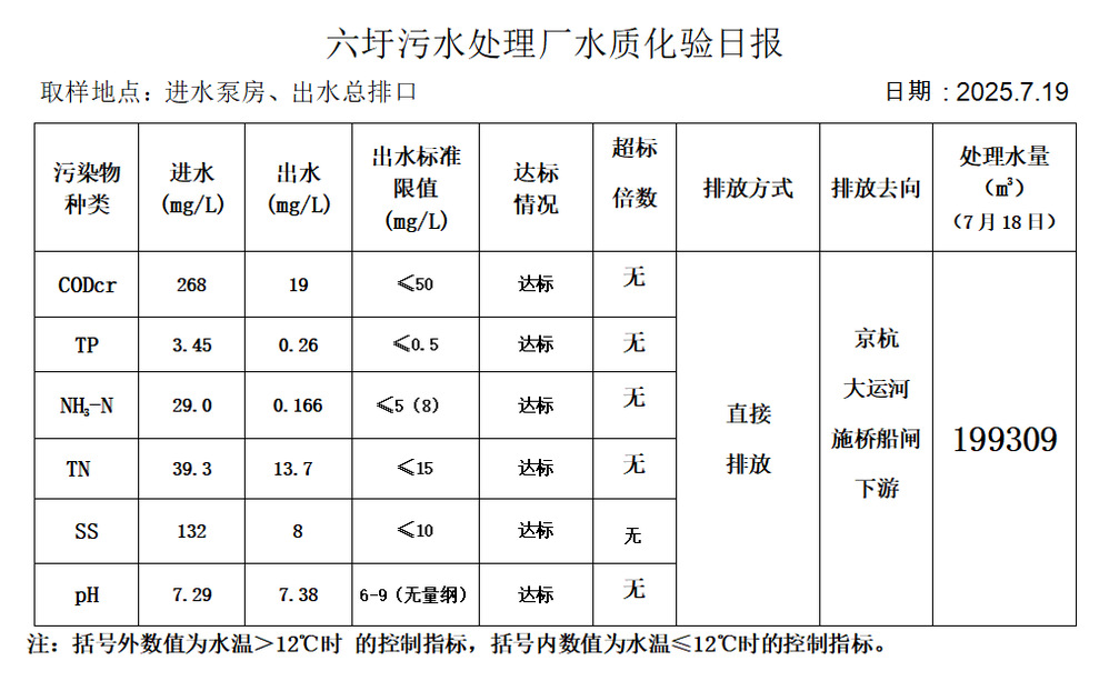 六圩污水处理厂水质化验日报(25.7.19)