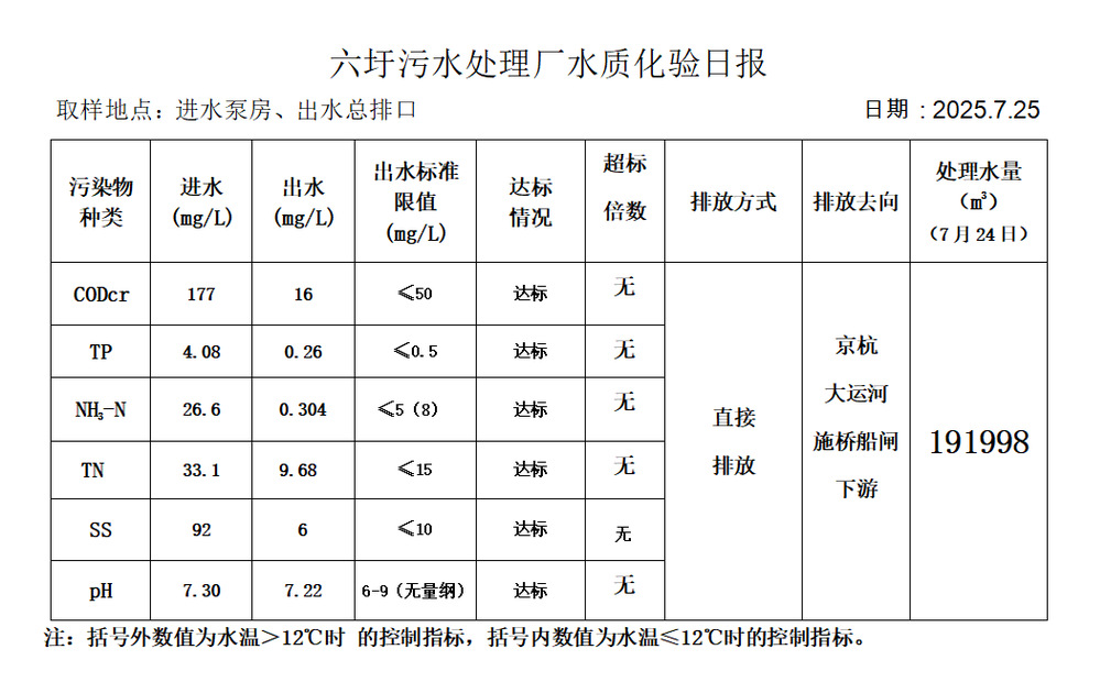 六圩污水处理厂水质化验日报(25.7.25)