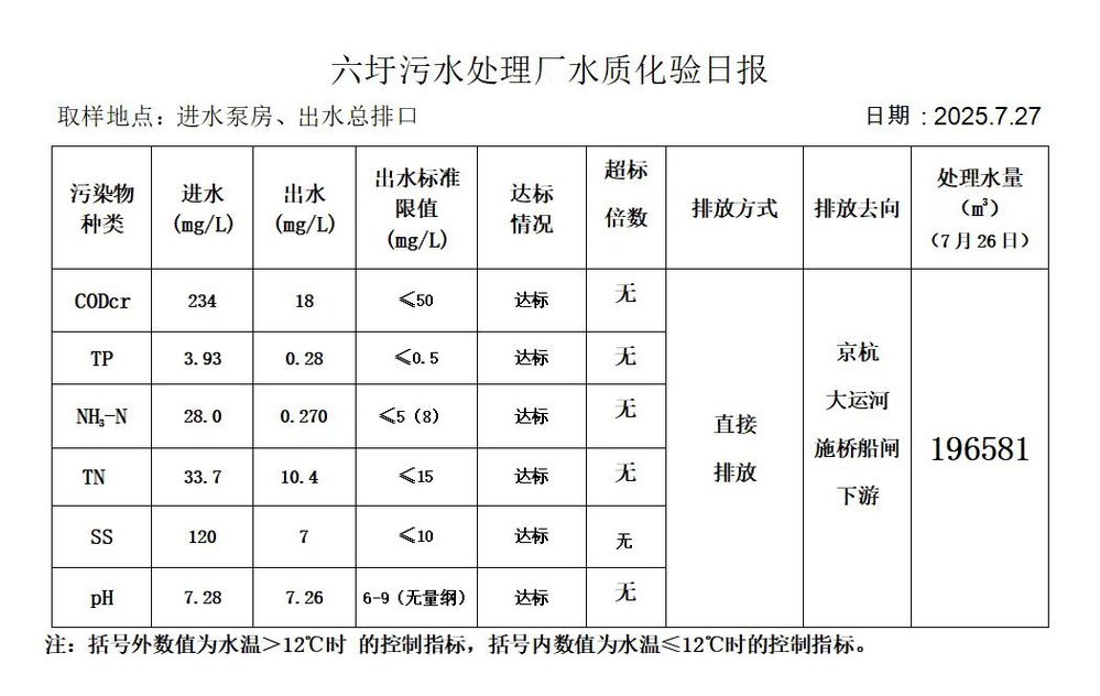 六圩污水处理厂水质化验日报(25.7.27)