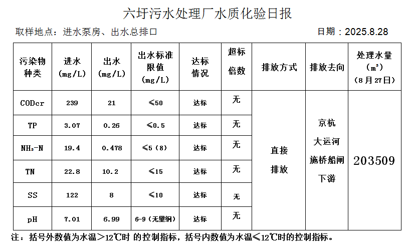 六圩污水处理厂水质化验日报(25.8.28)