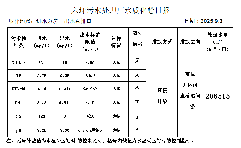 六圩污水处理厂水质化验日报(25.9.3)