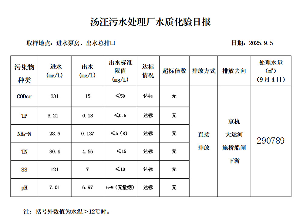 汤汪污水处理厂水质化验日报(25.9.5)