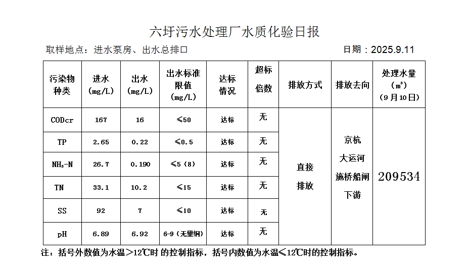 六圩污水处理厂水质化验日报(25.9.11)