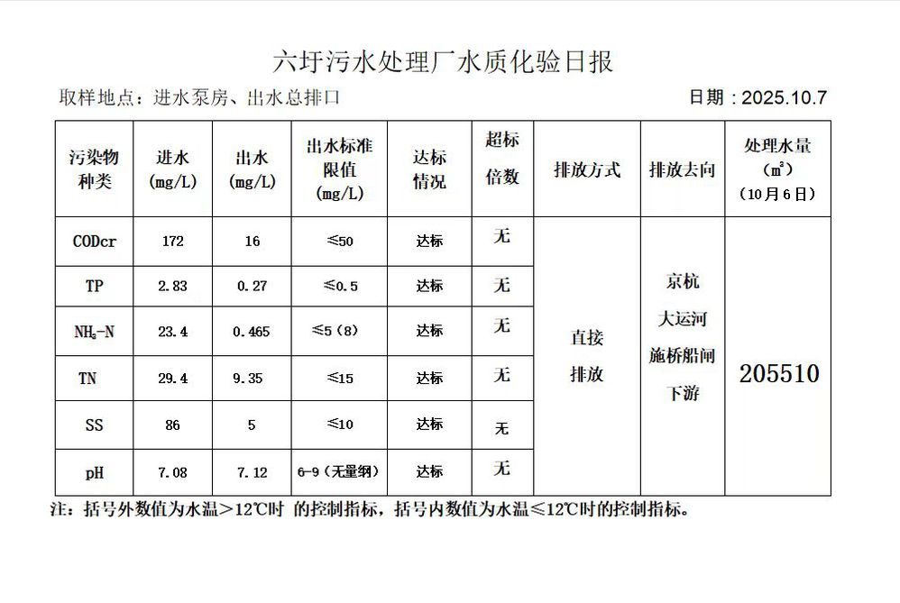 六圩污水处理厂水质化验日报(25.10.7)