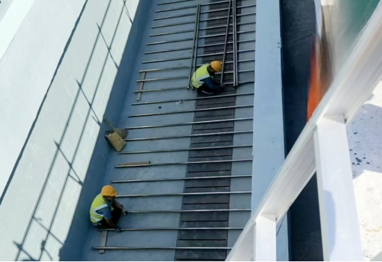 在生物反应池作业面上,正在进行火烧板贴面安装的黄师傅是众多坚守者中的一员。黄师傅说“为了抢进度,除了中秋节下午放了半天假,整个假期我们都在工地上”。工地每天清晨5点半开始运转,施工人员到岗后首先参加安全例会和班前教育,明确当日任务后,便立即投入紧张作业。这份坚守,不仅体现了建设者对岗位的尽责,更寄托着对项目早日建成投运的期盼。