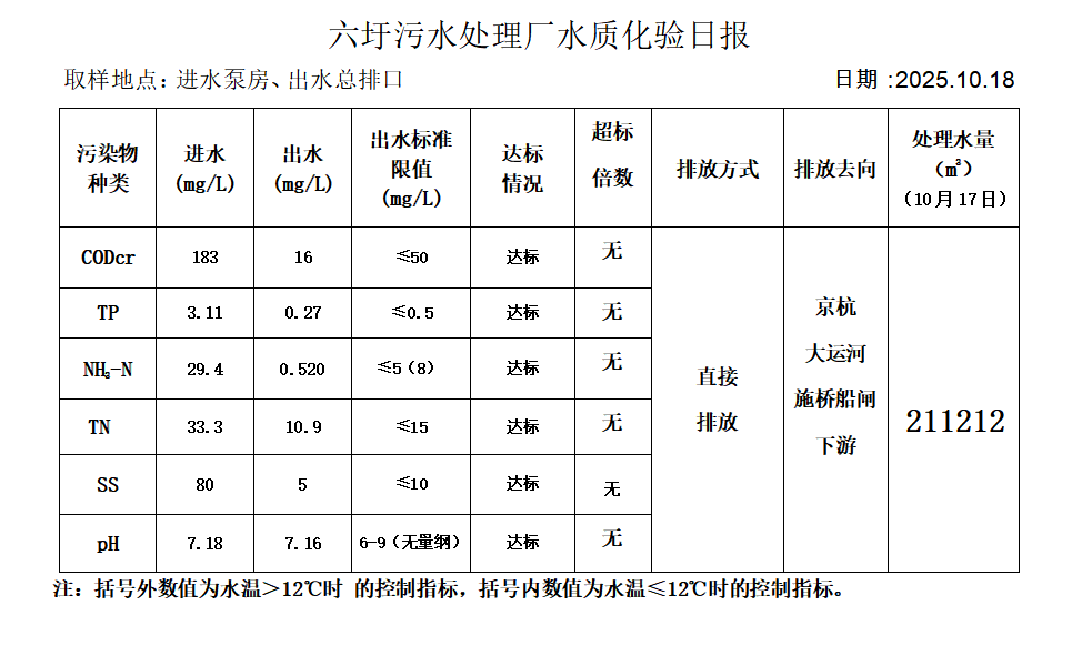 六圩污水处理厂水质化验日报(25.10.18)